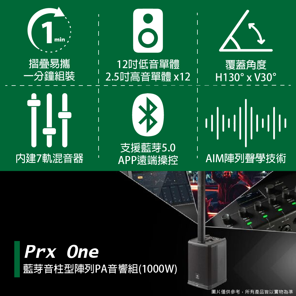 ◆ 2.5吋高音單體 x12、12吋低音單體、總功率1000W