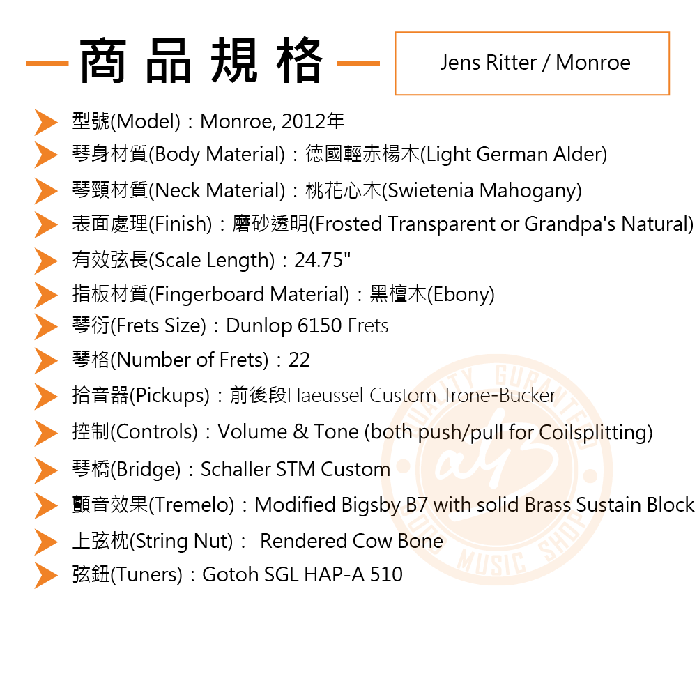 ◆ Jens Ritter受知名人士、樂手青睞,Monroe(2012年)透亮寶藍色