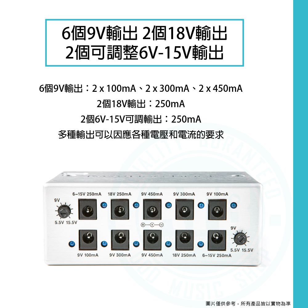 ◆ 4個9V輸出,1個9V/18V可切換輸出