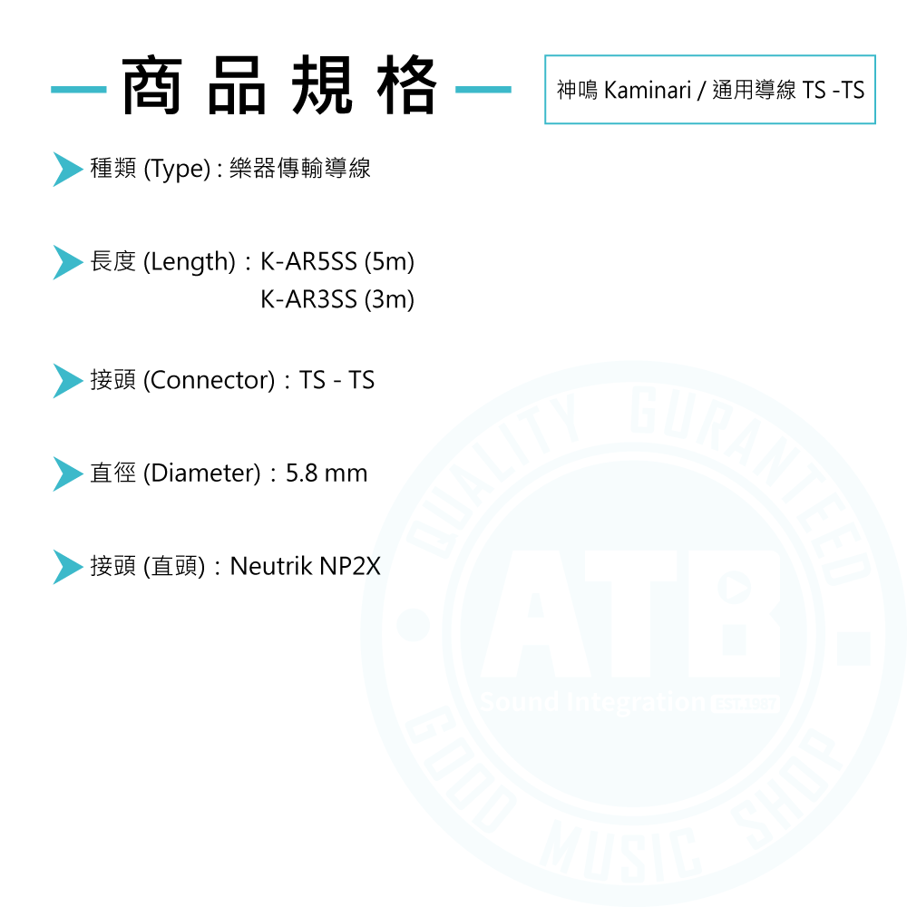 ◆ 日本品牌Kaminari推出的優質通用導線