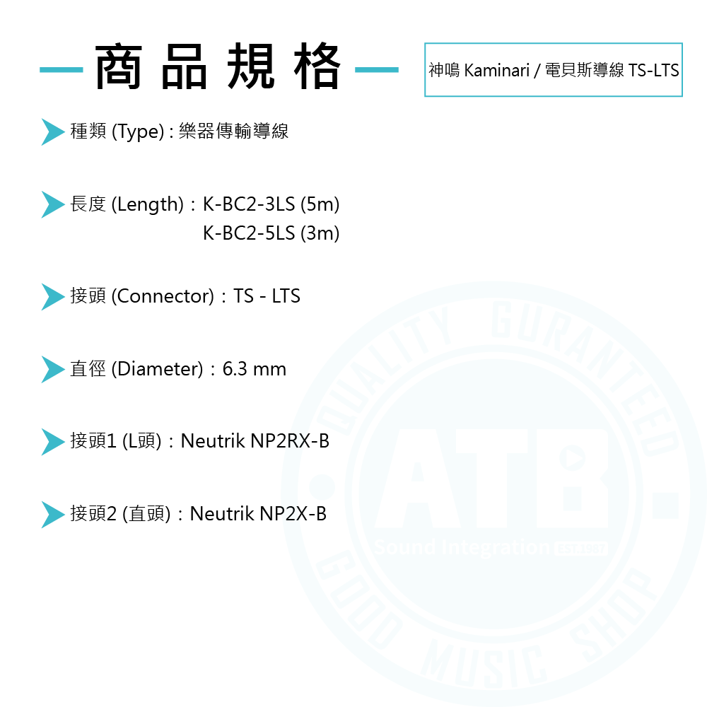 ◆ 日本品牌Kaminari推出的優質貝斯導線