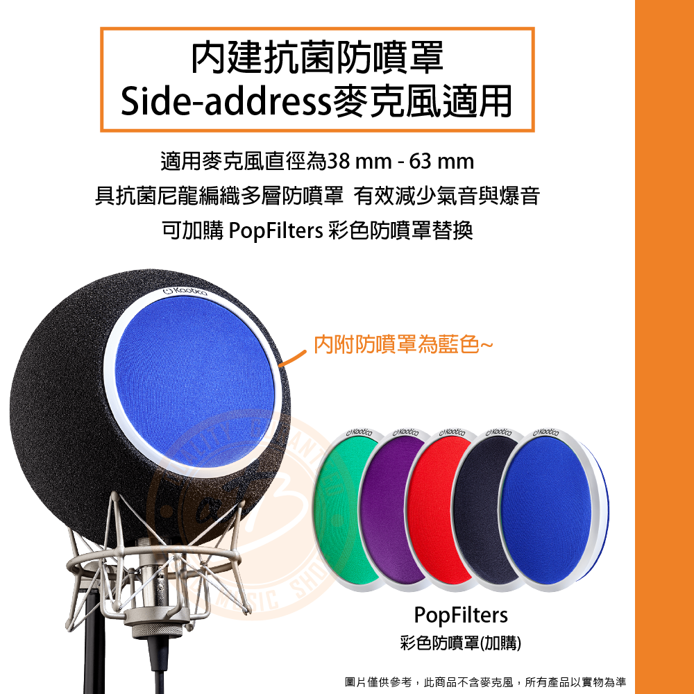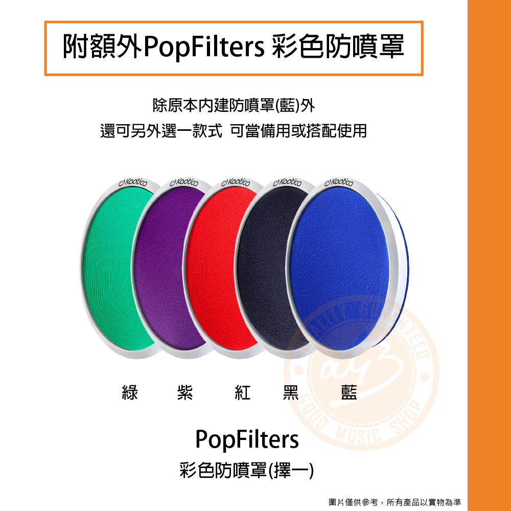 ◆ 內建抗菌防噴罩(藍),再附額外PopFilters彩色防噴罩x1