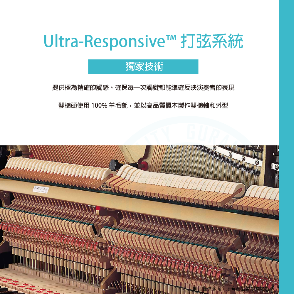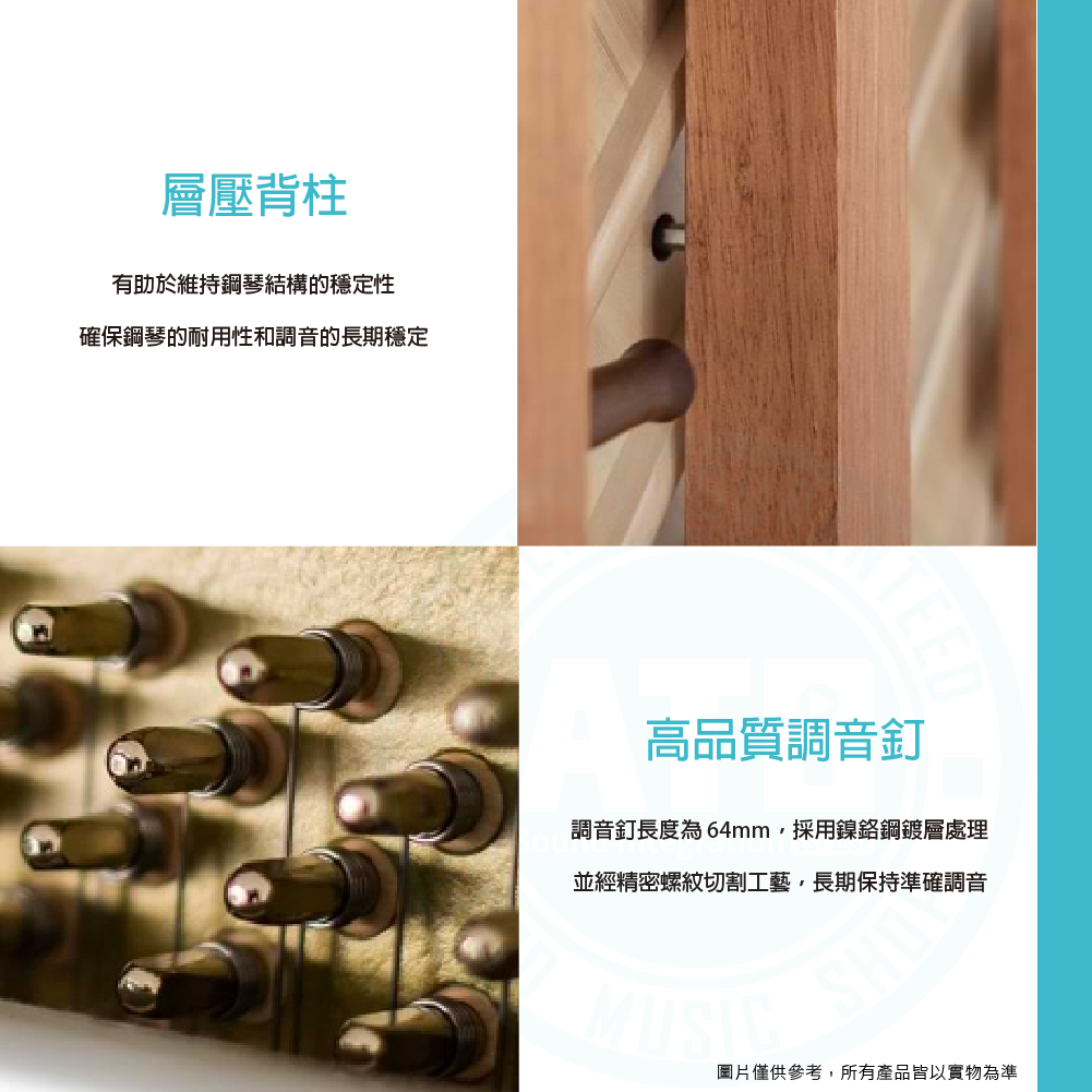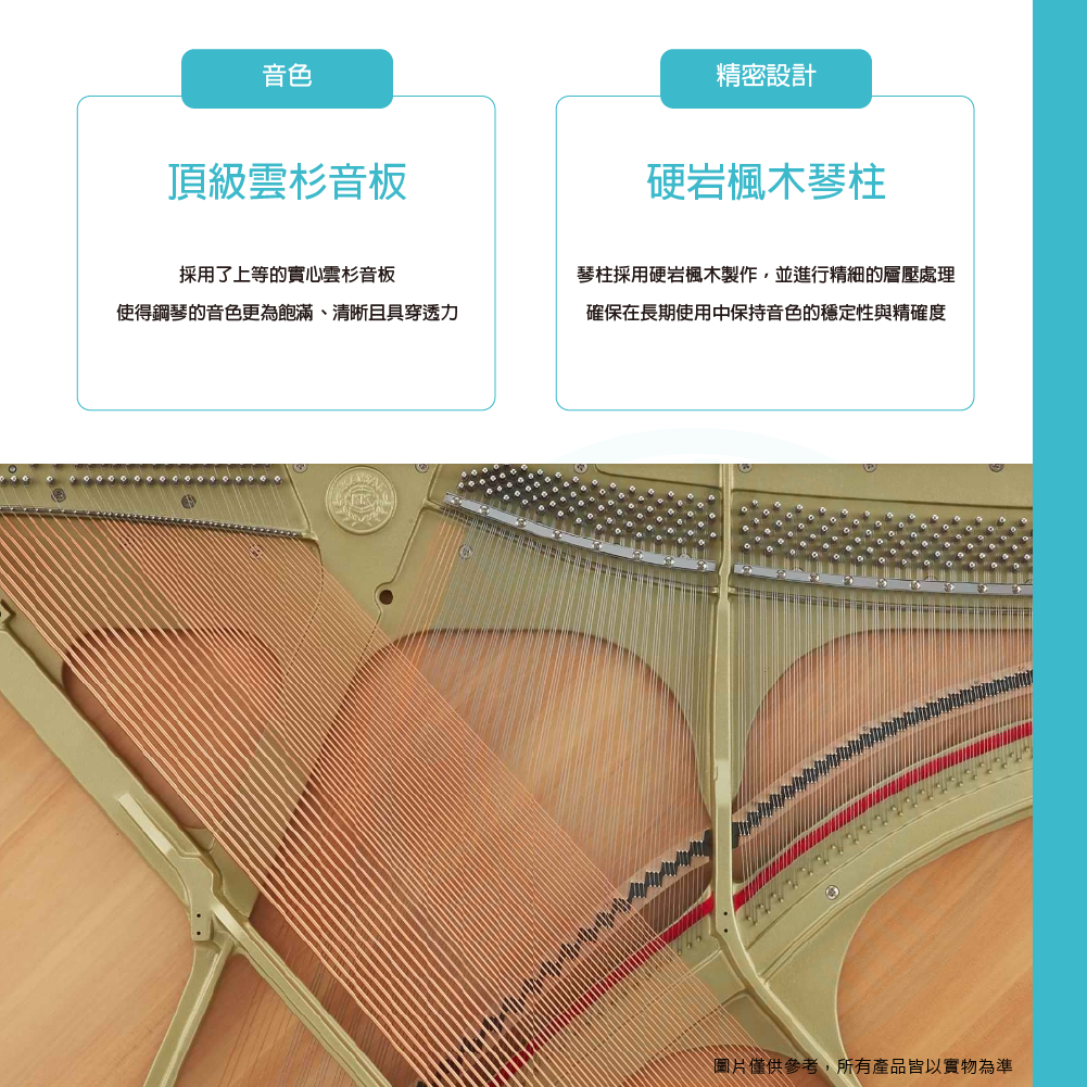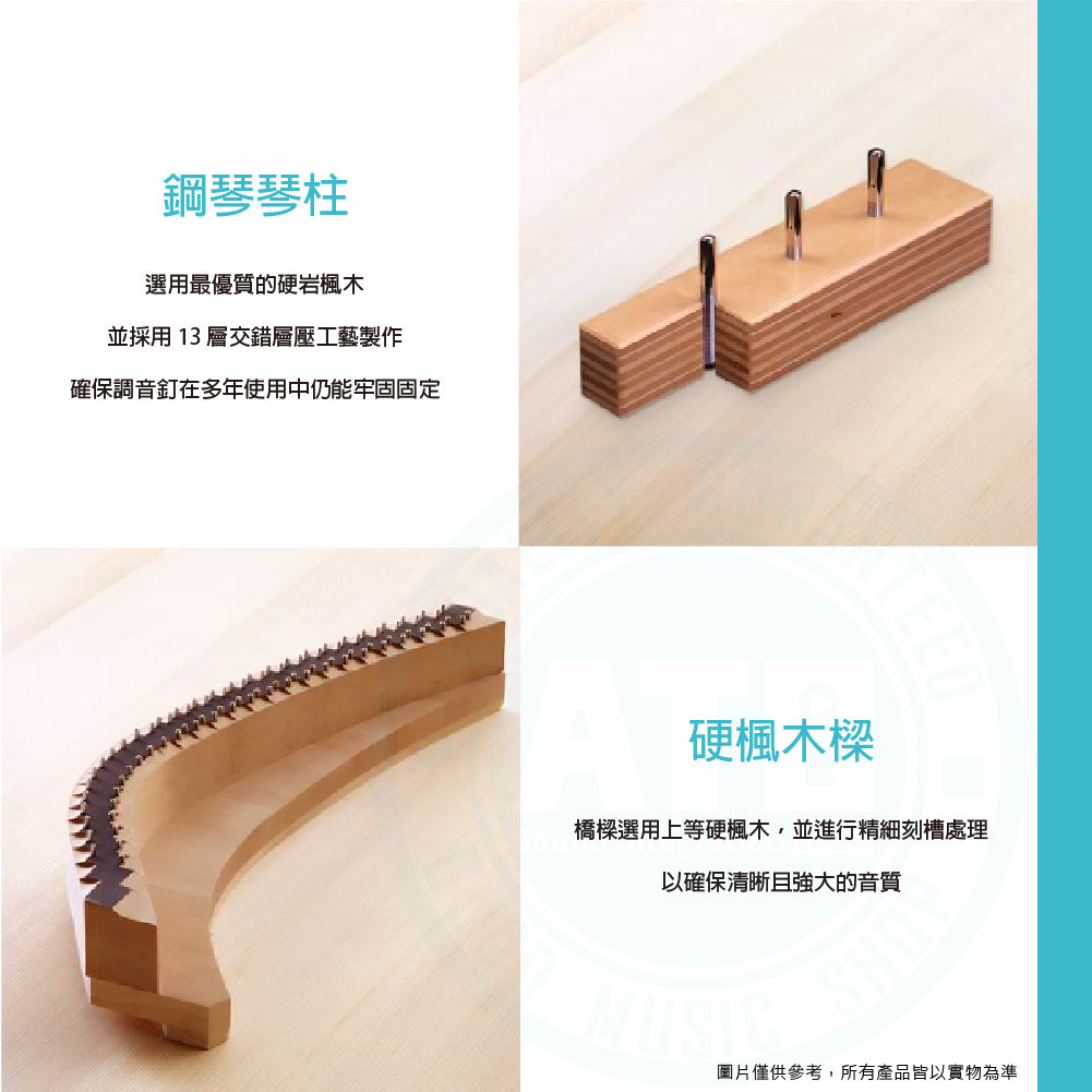 ◆ 硬岩楓木琴柱,13層交錯層壓,長期調音穩定性
