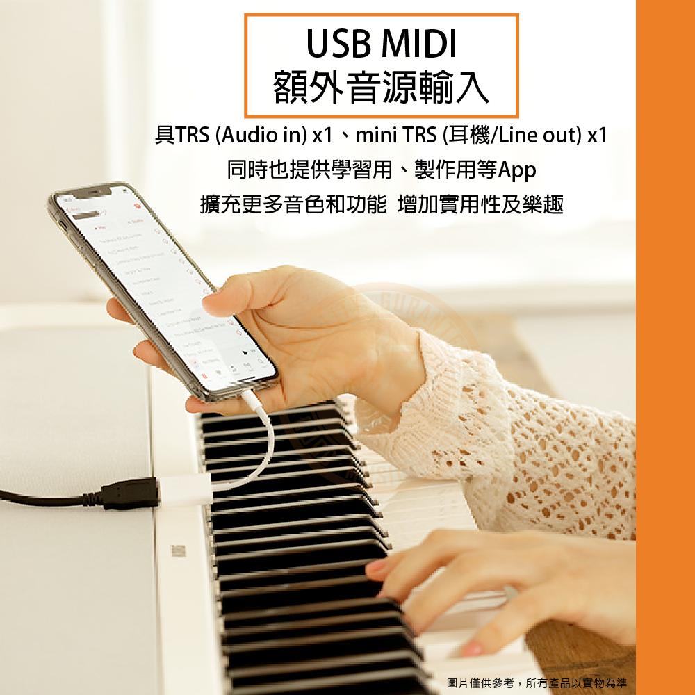 ◆USB MIDI/Audio、額外音源輸入、30W立體聲喇叭