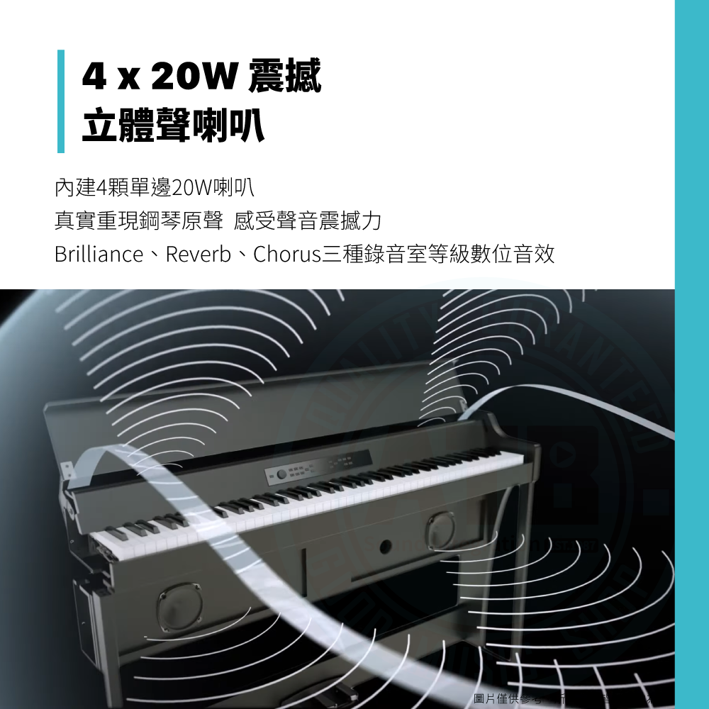 ◆ 內建4顆單邊20W喇叭,真實重現鋼琴原聲
