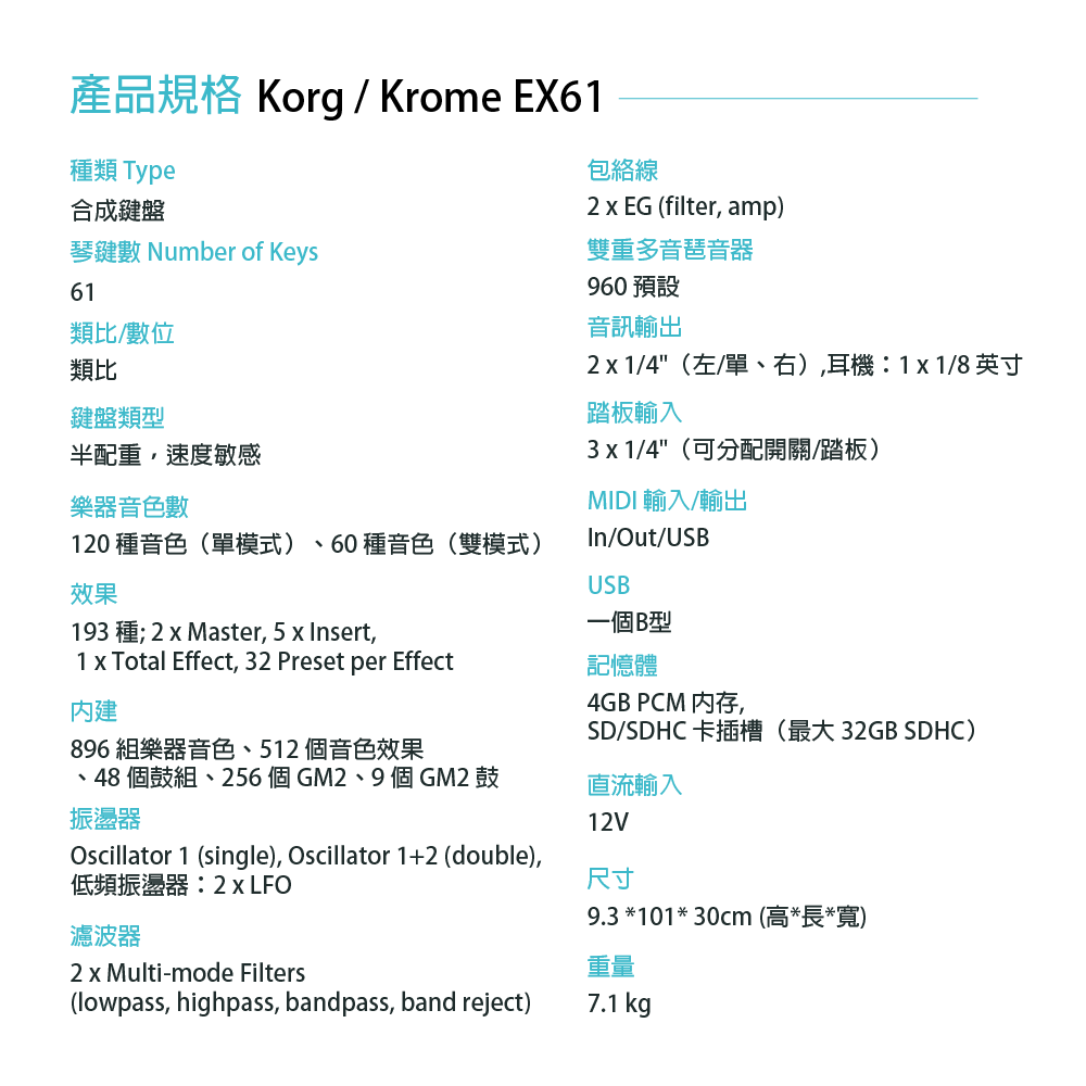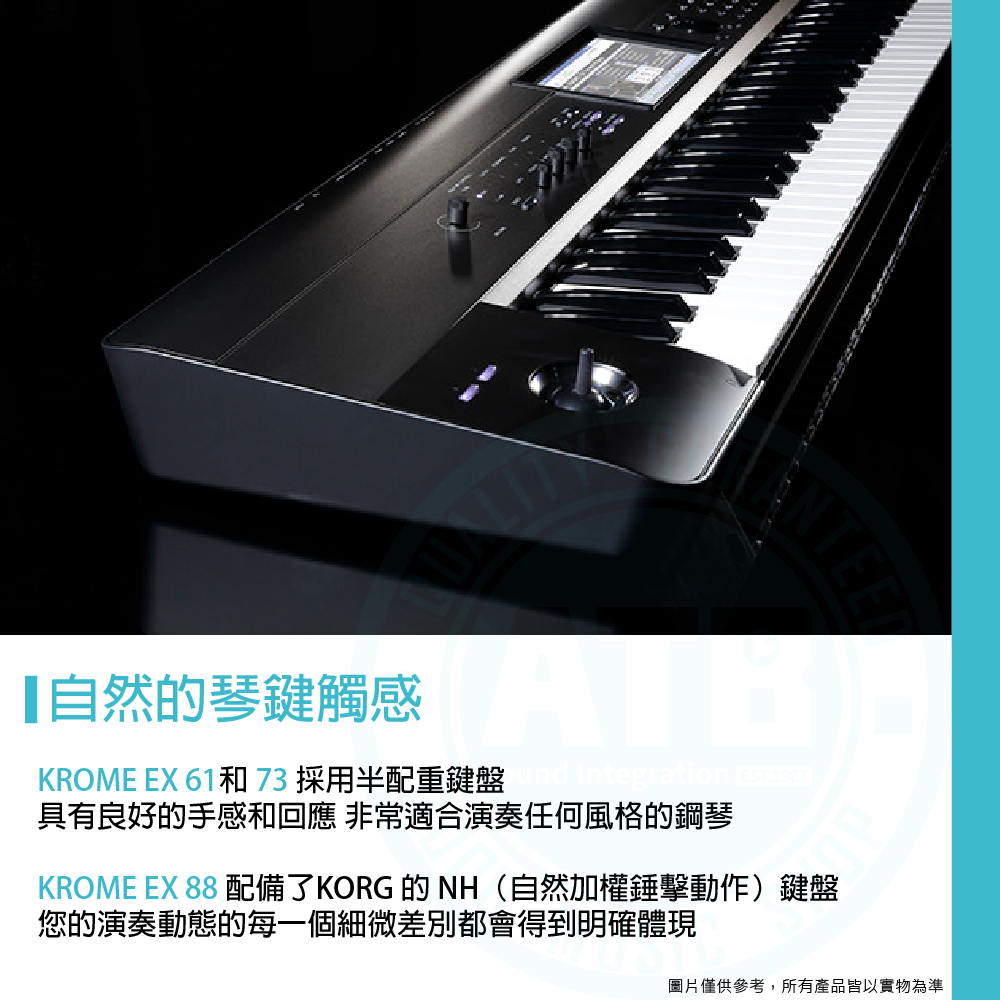 ◆搭載Korg 61、73鍵半配重力度感應式琴鍵