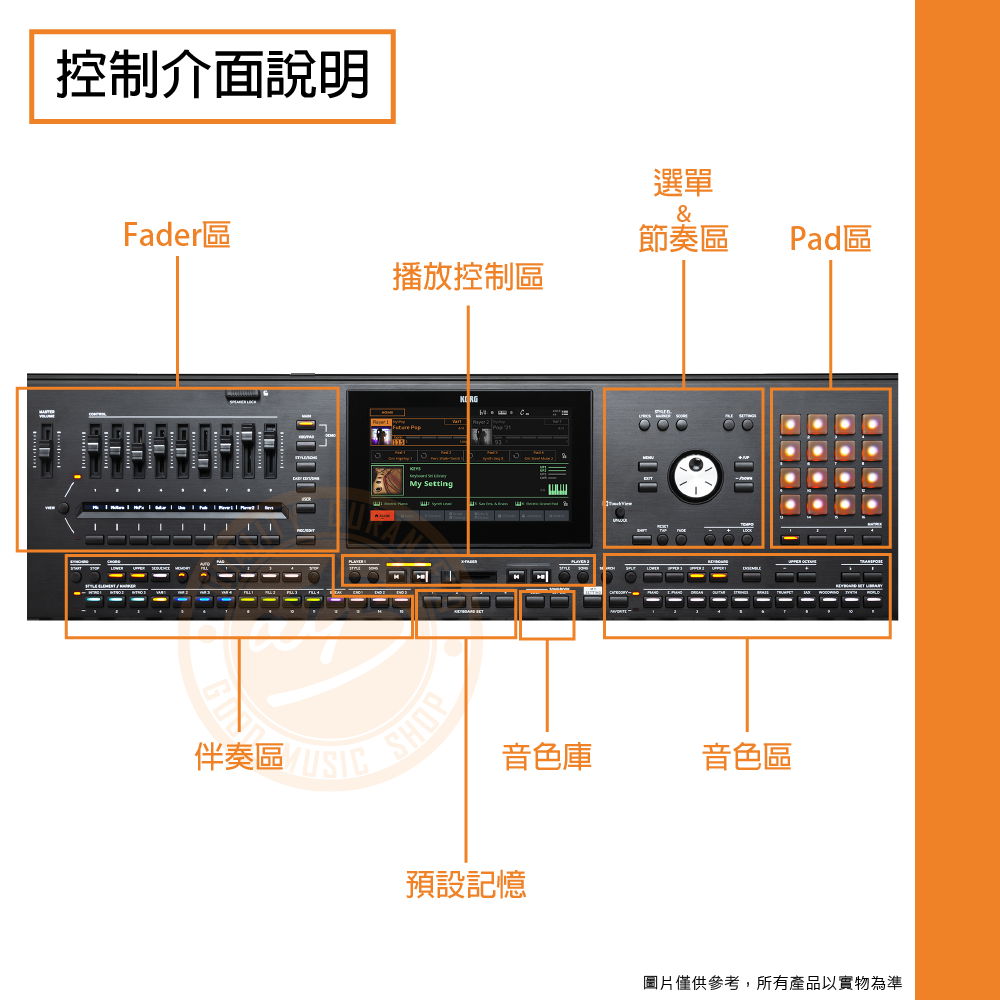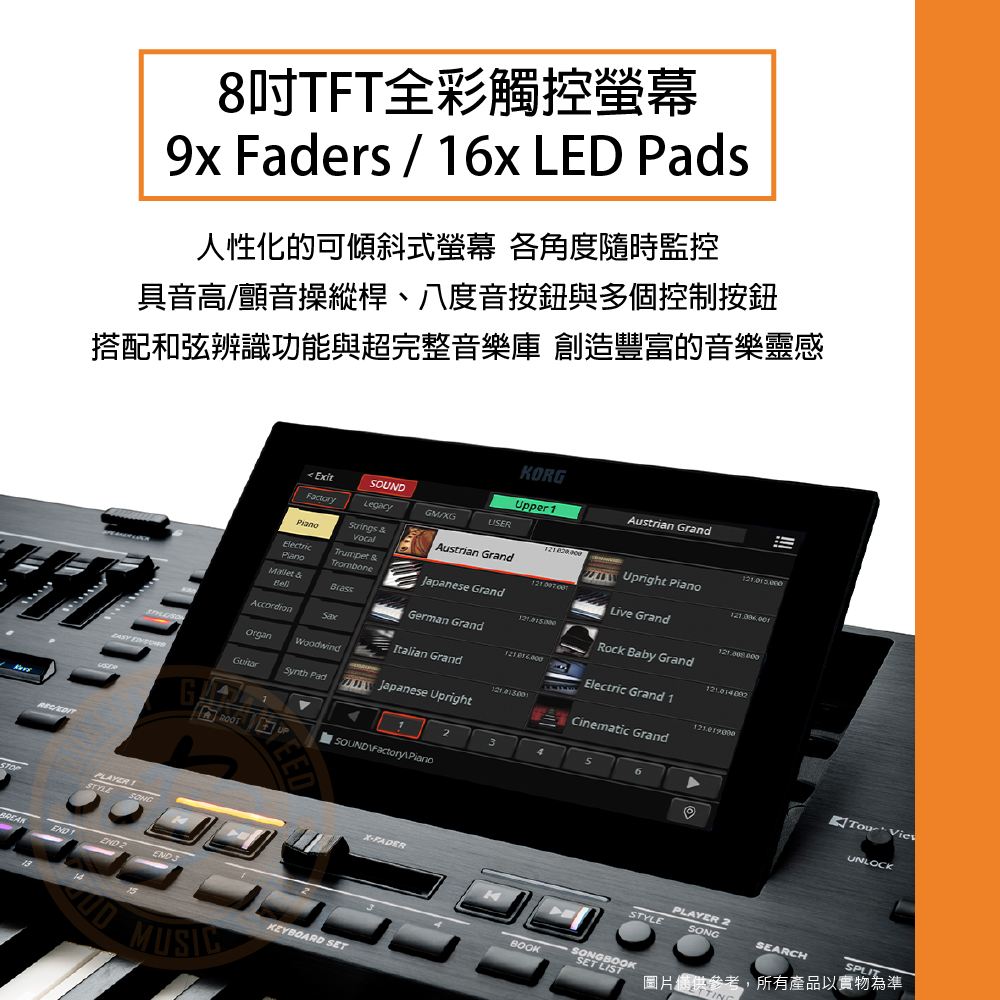 ◆ 搭載8吋TFT全彩觸控螢幕、9x Faders、16x LED Pads