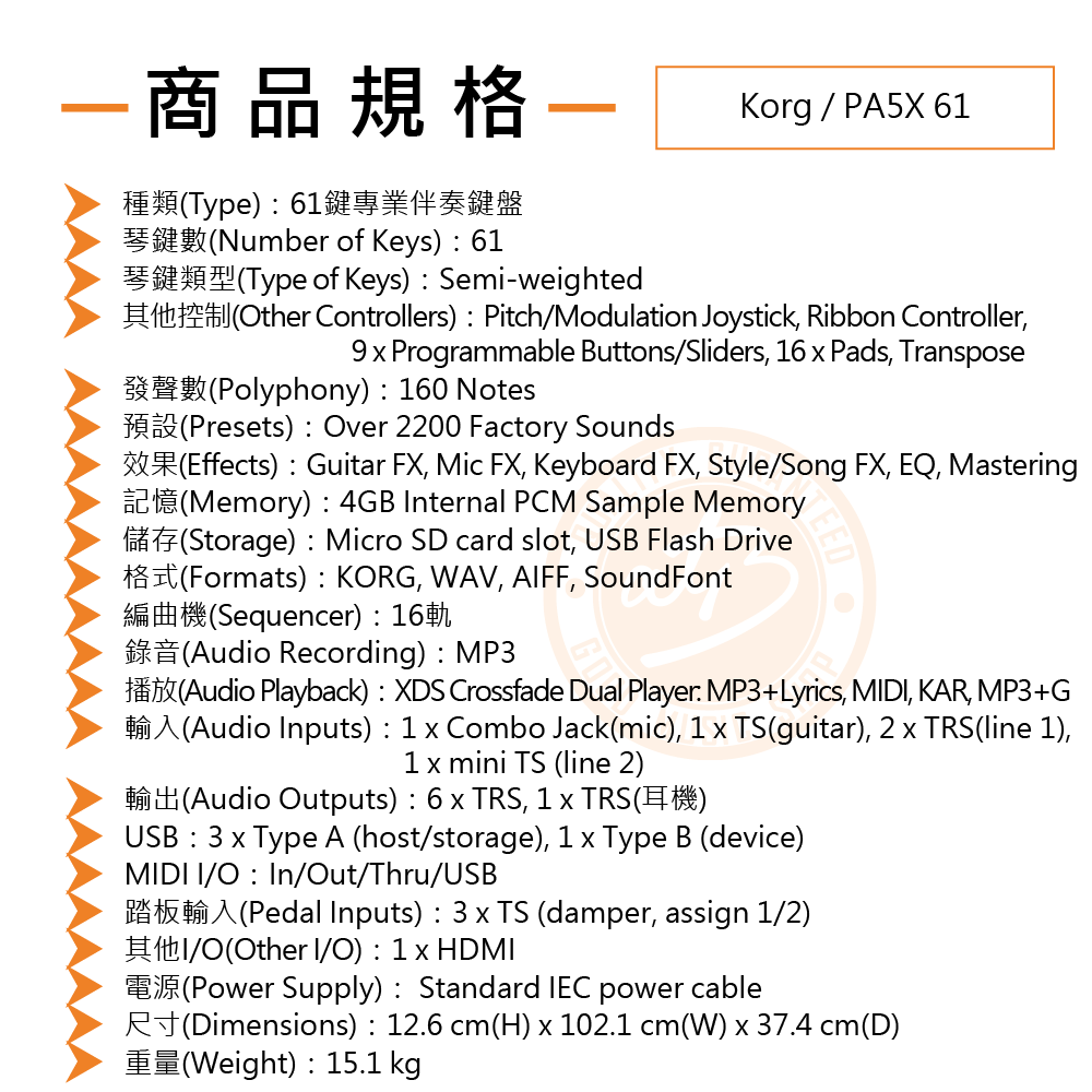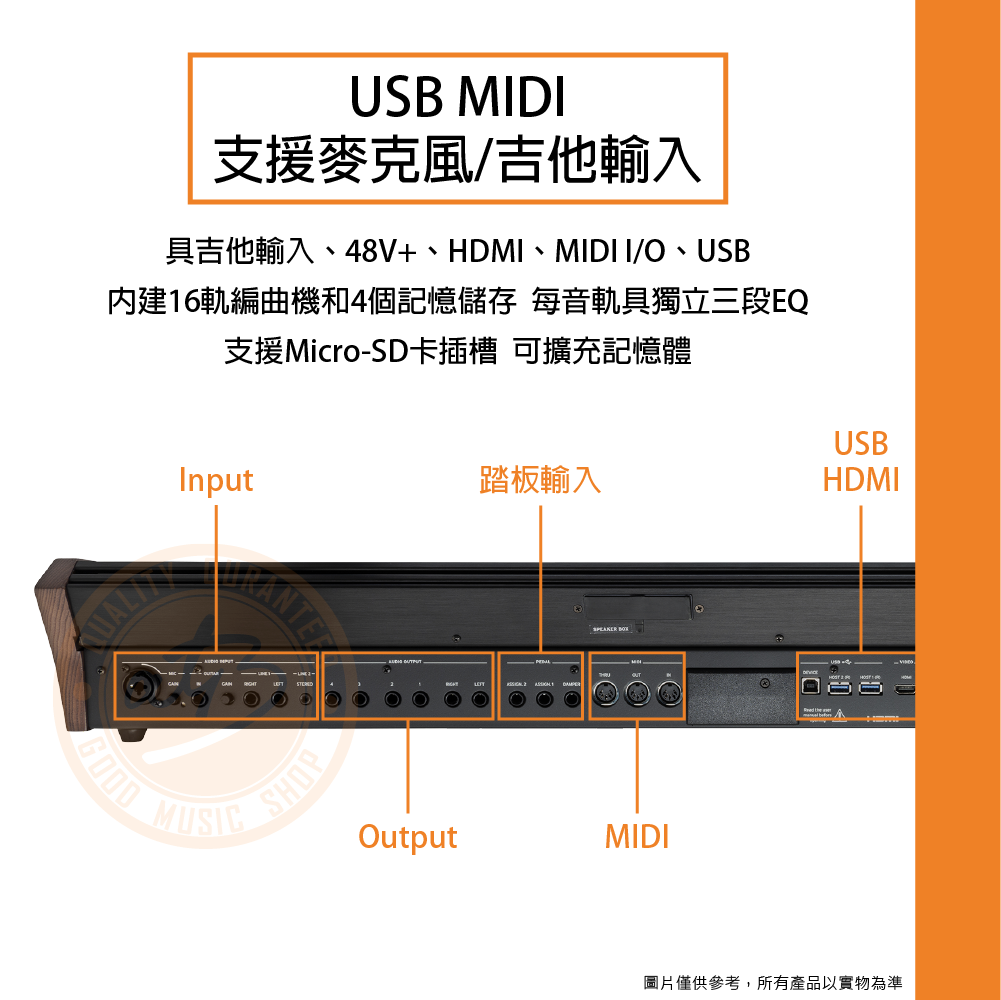 ◆ 具吉他輸入、48V+、HDMI、MIDI I/O、USB