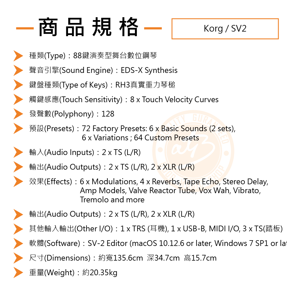 ◆ 8個Bank,每個Bank可儲存8個音色變化,共64個自訂音色