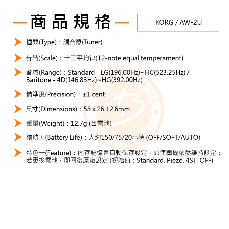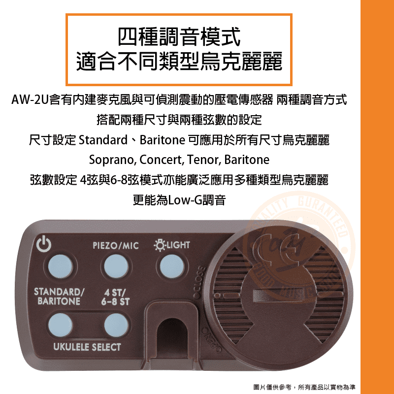 ◆AW-2U含有兩種調音方式:內建麥克風與可偵測震動的壓電傳感器