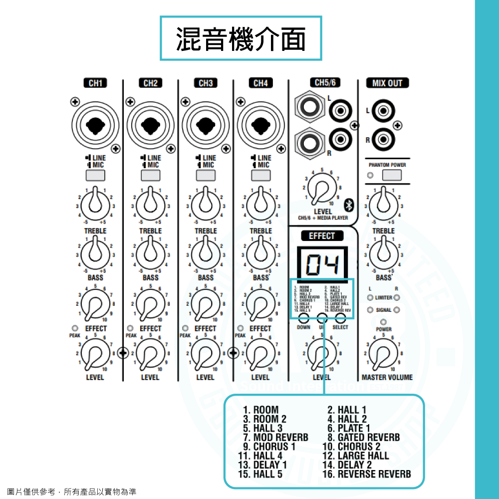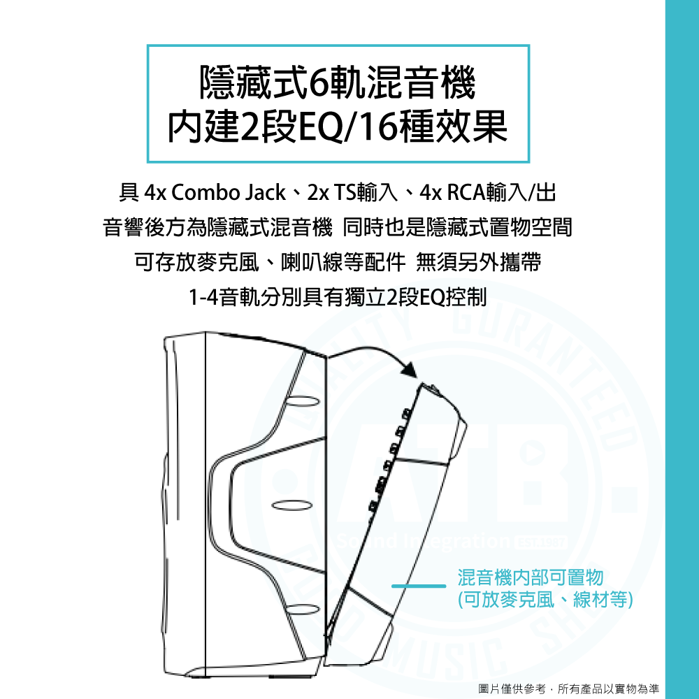 ◆ 具隱藏式6軌混音機,內建2段EQ/16種效果