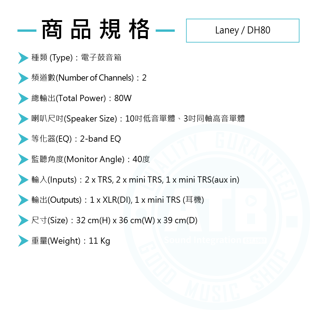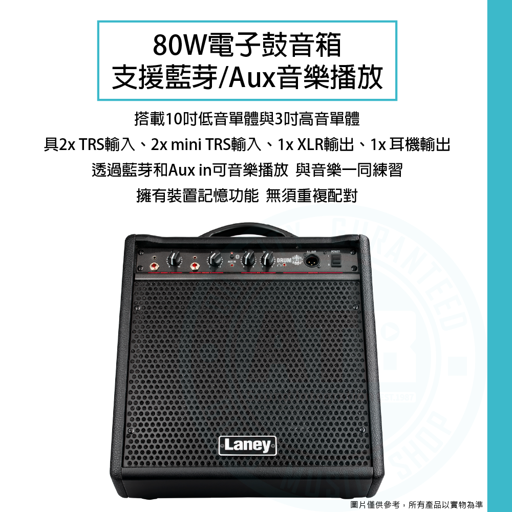 ◆ 80W電子鼓音箱,搭載10吋低音單體與3吋高音單體