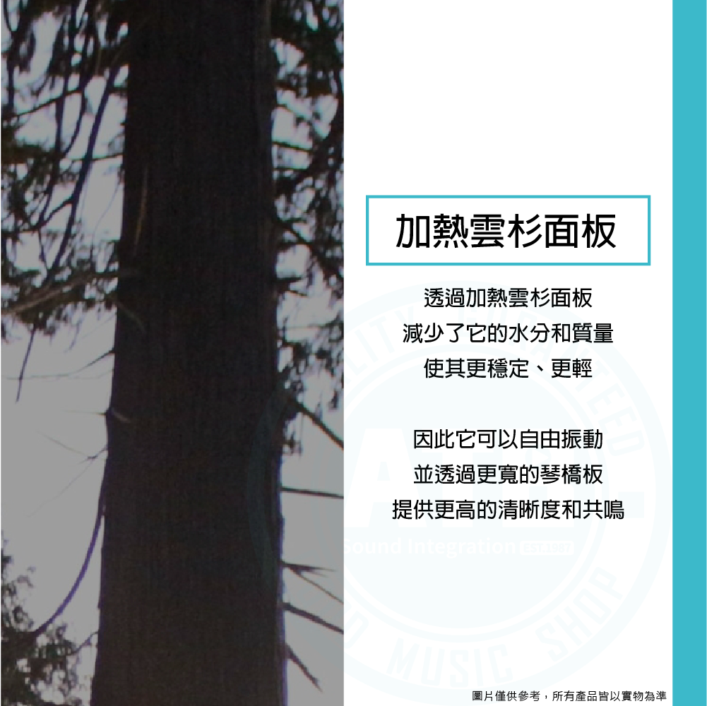 ◆精選加熱雲杉面板,側面和背面採用層壓板