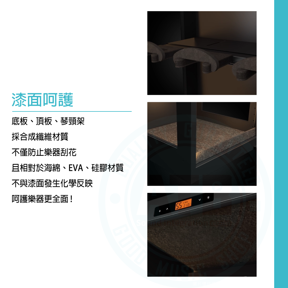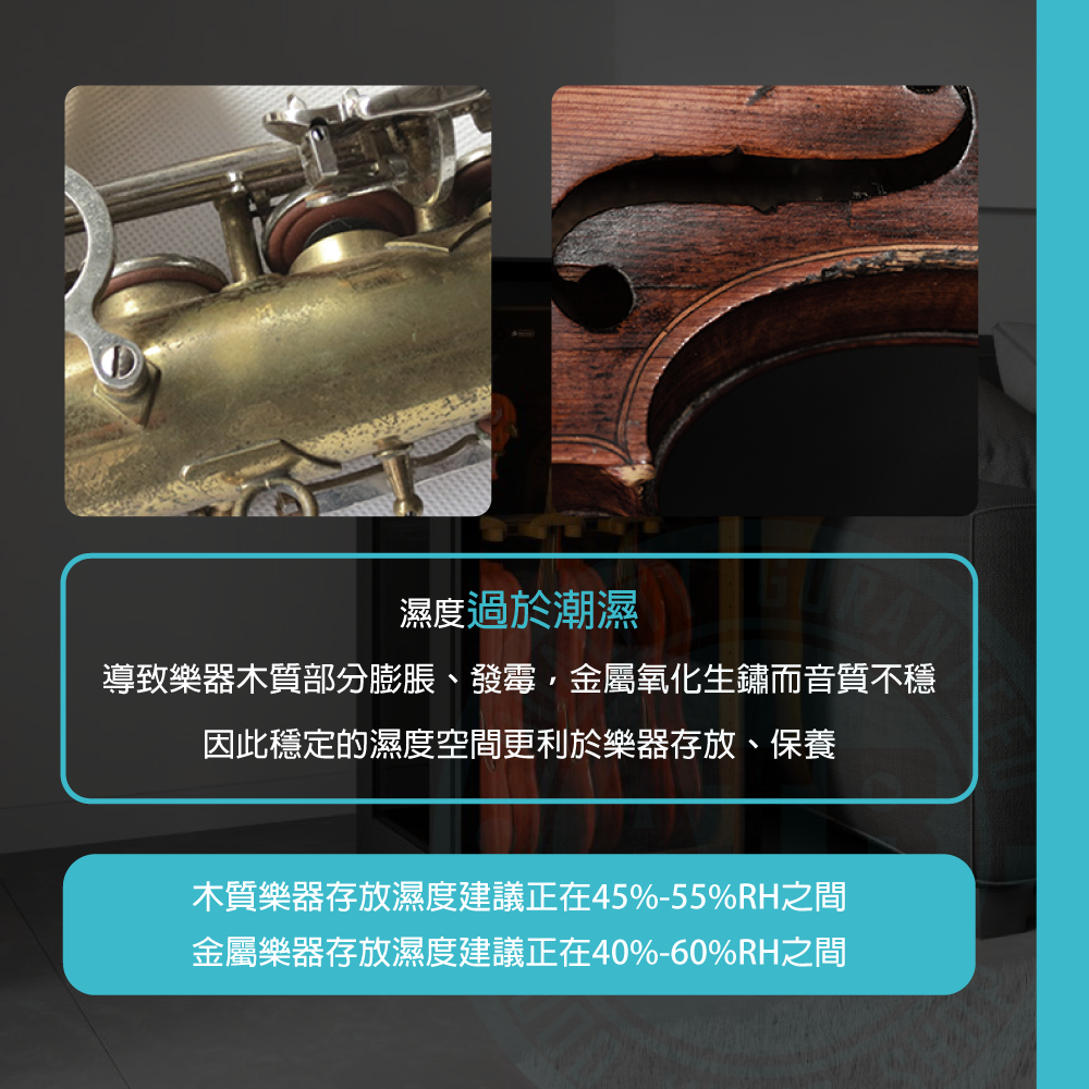 ◆數位濕度控管,40–60% RH 精準調節保護木質樂器