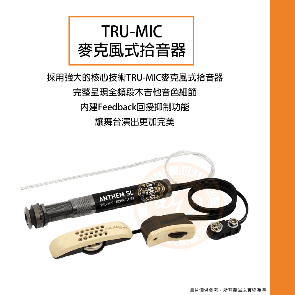 ◆ TRU-MIC麥克風式拾音器完整呈現全頻段木吉他音色細節,內建Feedback回授抑制功能,讓舞台演出更加完美