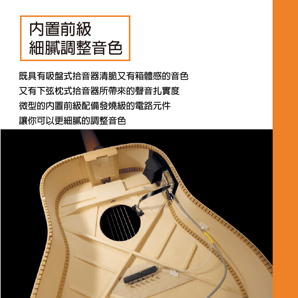 ◆ 將iBeam吸盤式拾音器與Element下弦枕拾音器相互結合,擴展音調範圍,能夠更細膩的拾取複雜多樣的吉他音色