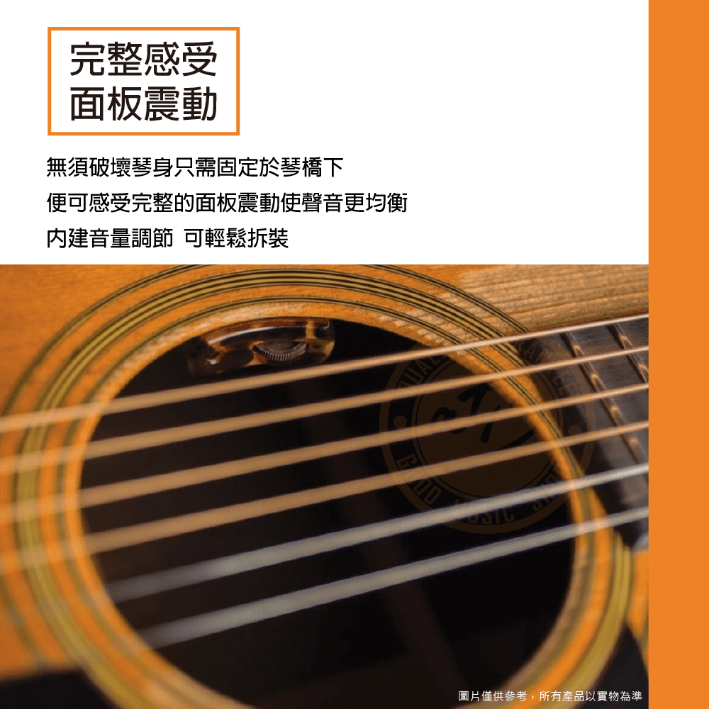 ◆ 無須破壞琴身只需固定於琴橋下,便可感受完整的面板震動使聲音更均衡