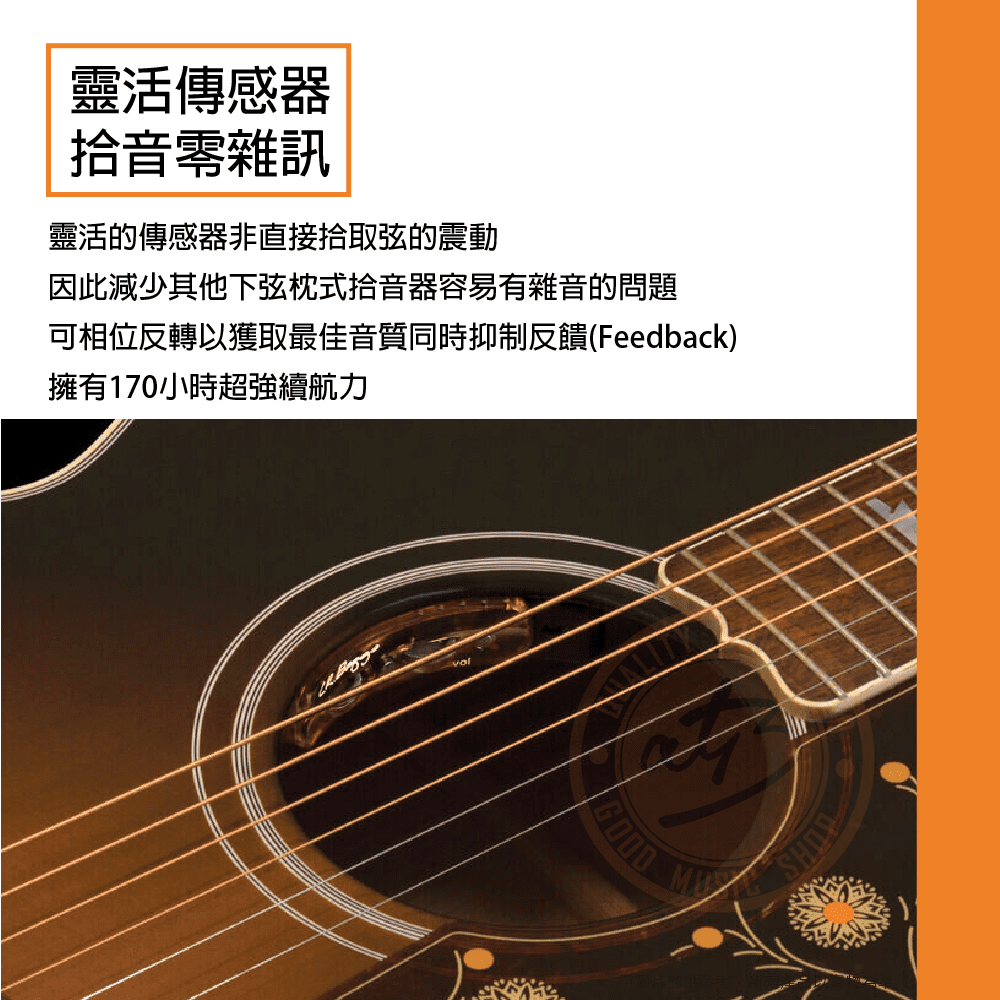 ◆ 靈活的傳感器非直接拾取弦的震動,因此減少其他下弦枕式拾音器容易有雜音的問題