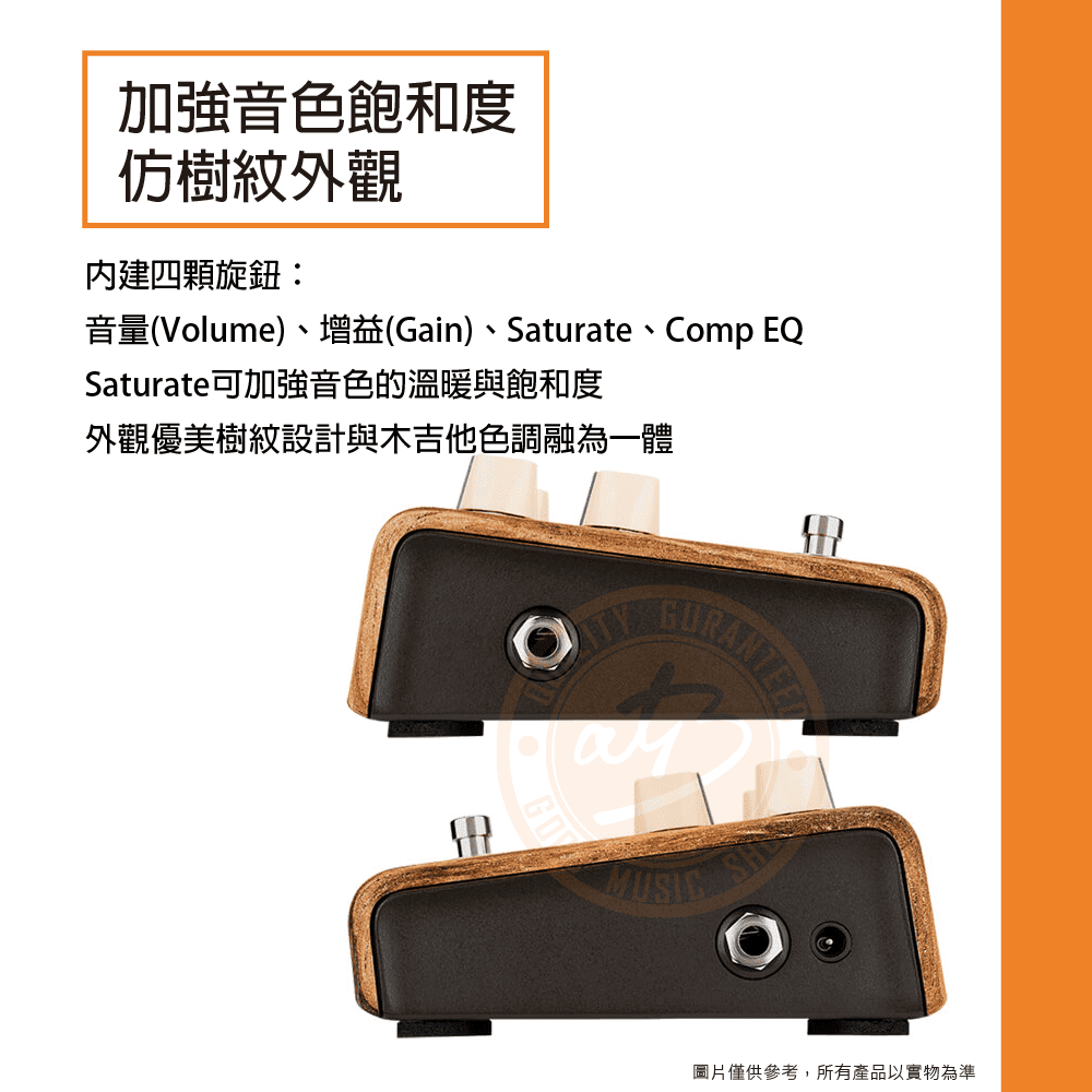 ◆ 內建四顆旋鈕:音量、增益(Gain)、Saturate、Comp EQ