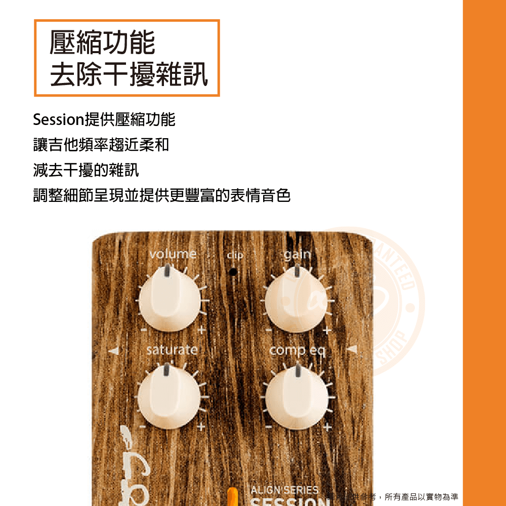 ◆ Session提供壓縮功能讓吉他頻率趨近柔和,減去干擾的雜訊,調整表情音色細節
