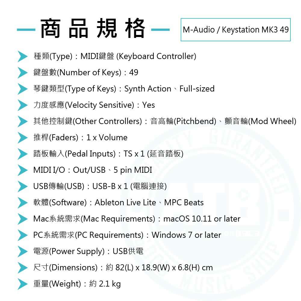 ◆ 49個力度感應琴鍵,支援iOS設備