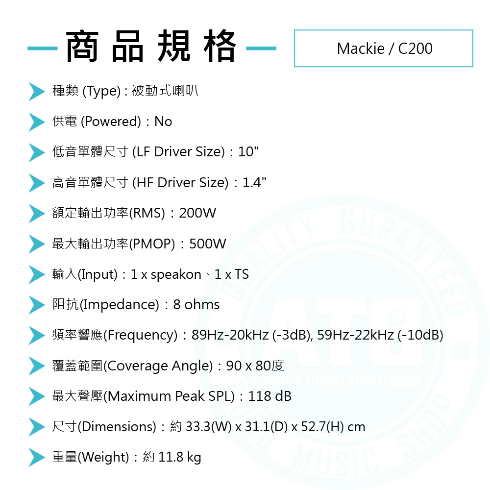 ◆ 總功率200w、最大聲壓118dB、頻率響應59Hz-22kHz