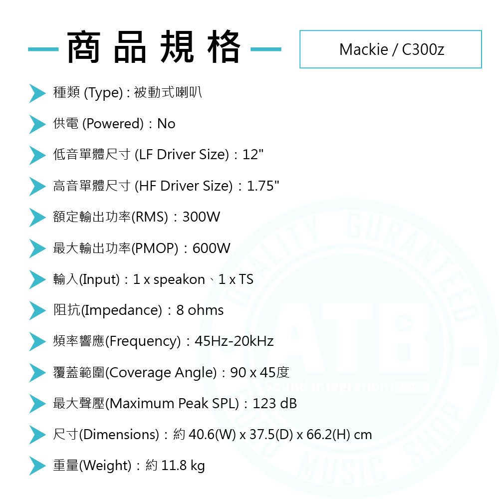 ◆ 總功率300w、最大聲壓123dB、頻率響應45Hz-20kHz