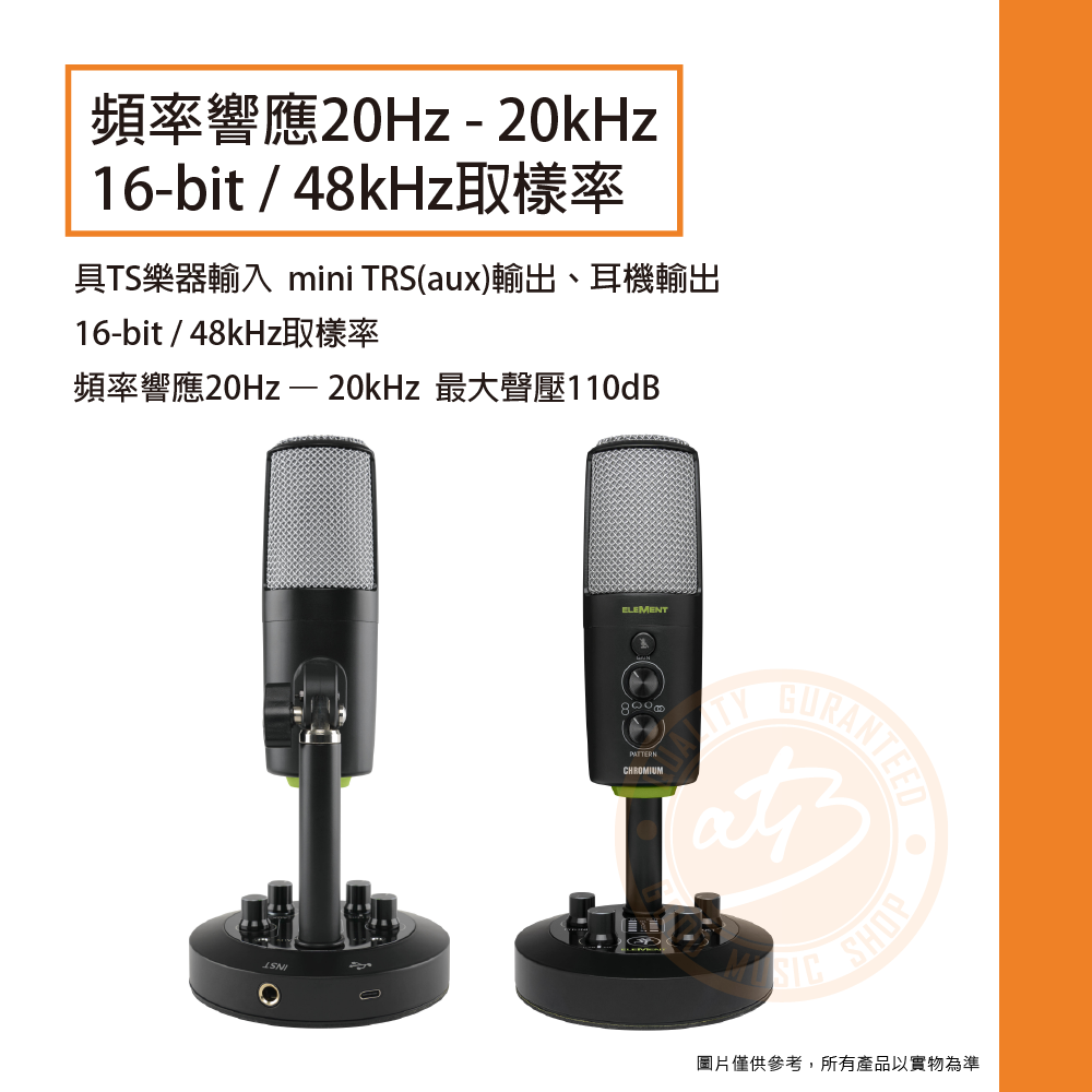 ◆ 16-bit / 48kHz取樣率,頻率響應20Hz – 20kHz,最大聲壓110dB