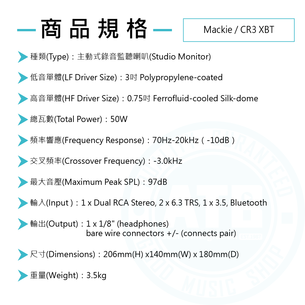 ◆3吋低音單體、0.75吋高音單體、總功率50W