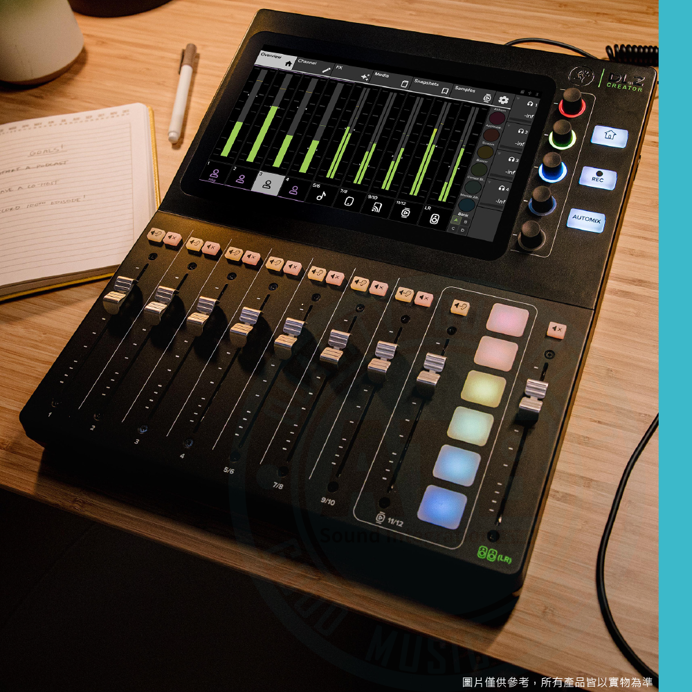 ◆ 12 In / 4 Pre / 6 Out / 9 Faders,4個耳機獨立混音