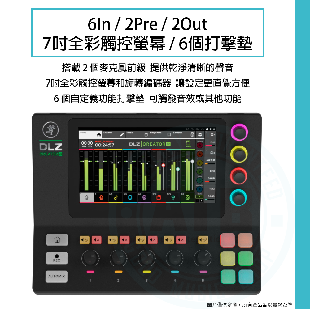 ◆ 6In/2Pre/2Out,7吋全彩觸控螢幕、6個打擊墊