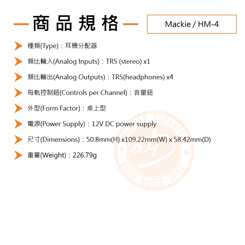 ◆一個TRS輸入、四個TRS耳機輸出,各輸出具獨立音量控制