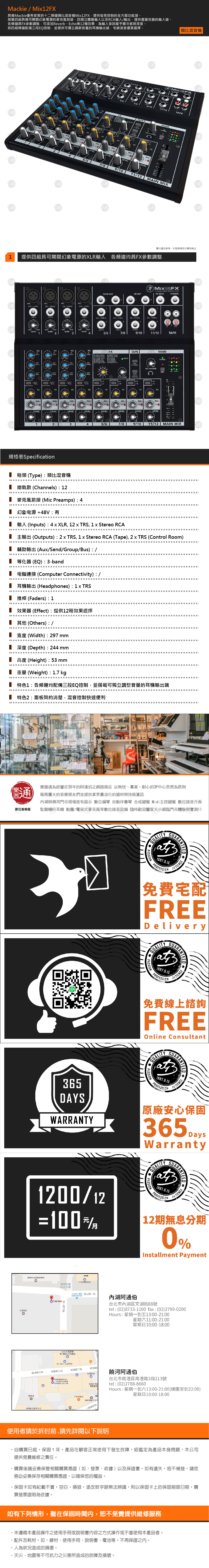 ◆具備Mackie好音質的12頻道類比混音機