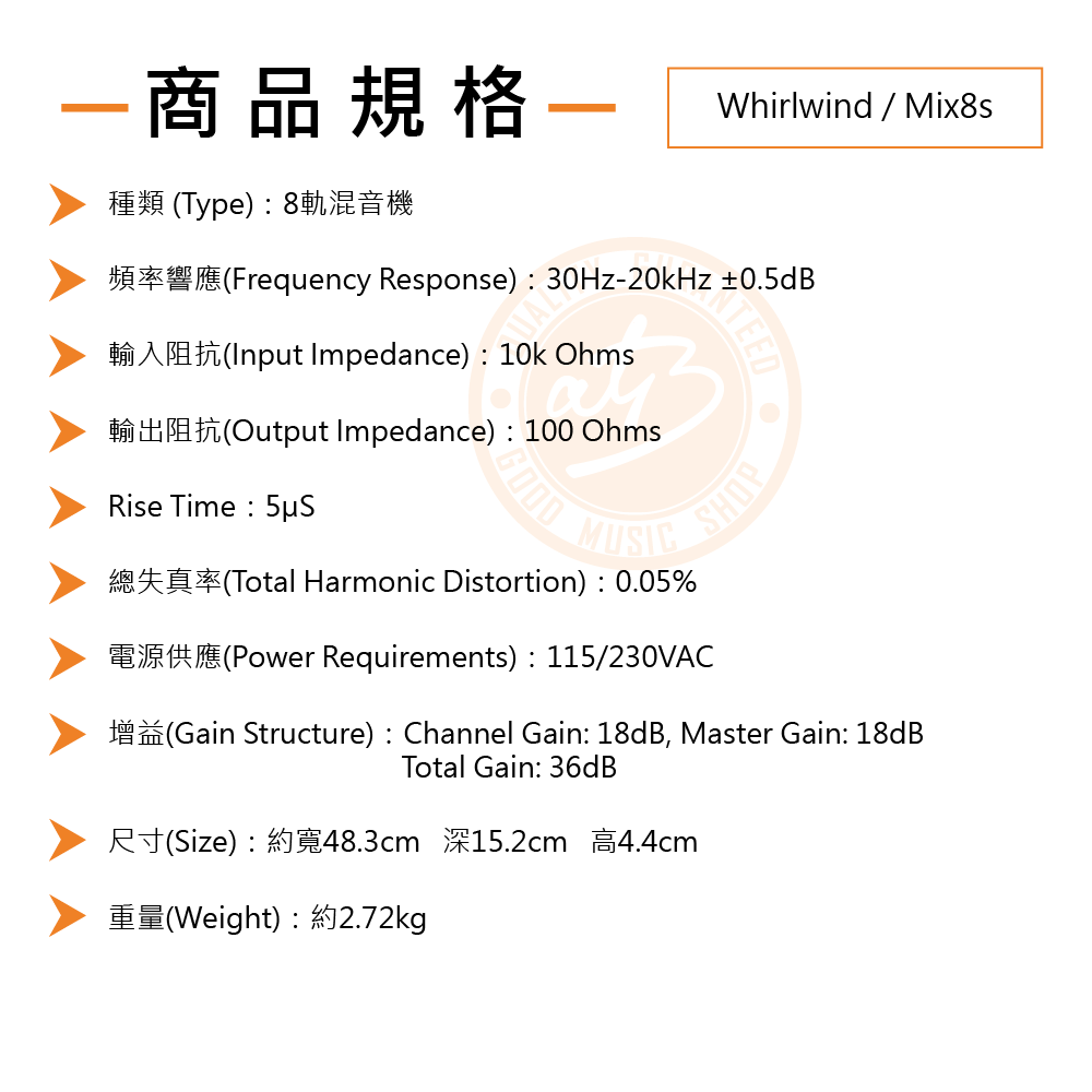 ◆具備Mackie好音質的8頻道類比混音機