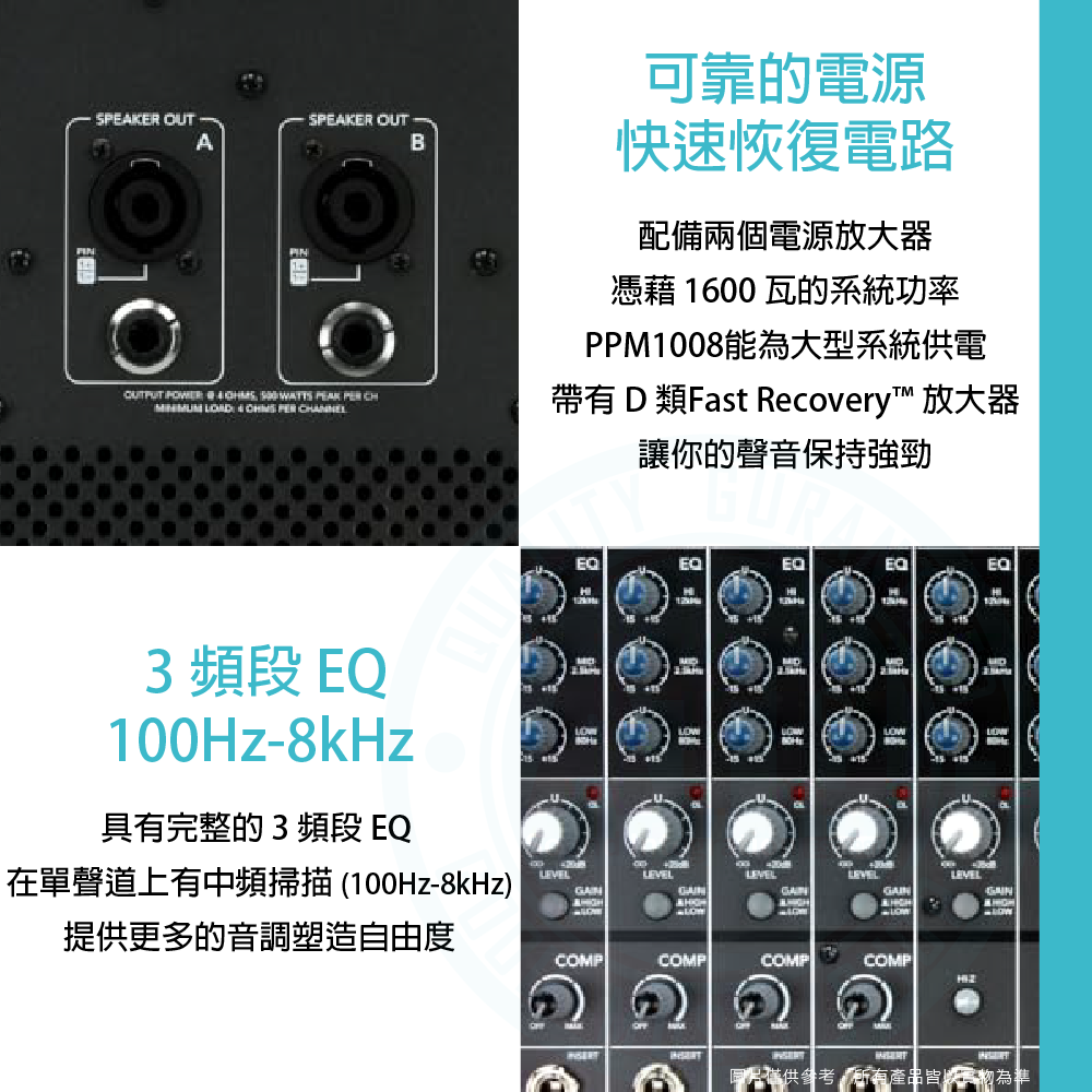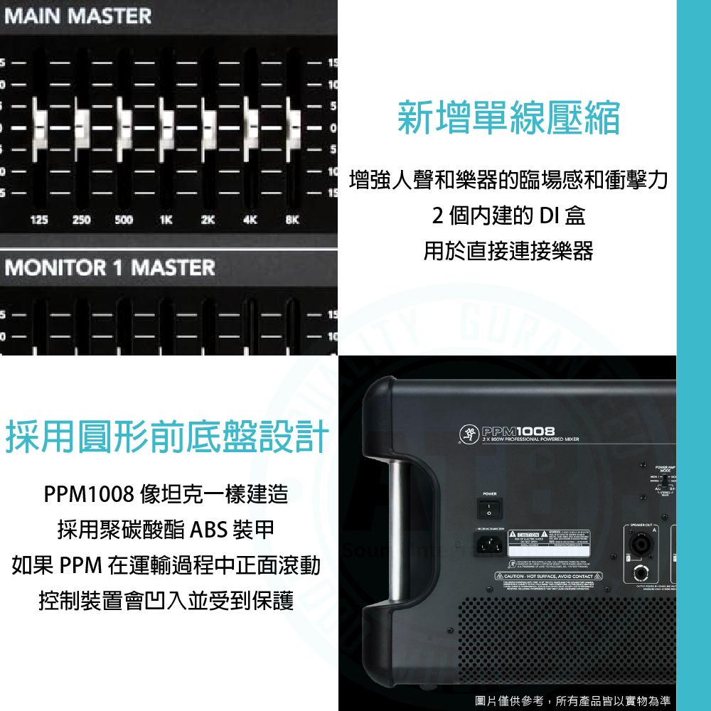 ◆混音器外殼側面內建堅固的金屬手柄,方便運輸