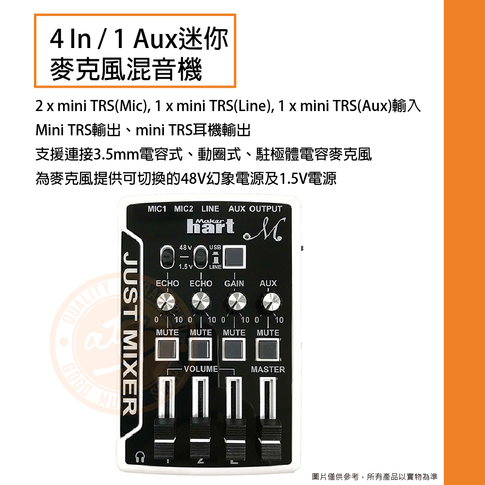 ◆ 支援連接3.5mm電容式、動圈式、駐極體電容麥克風,為麥克風提供可切換的48V幻象電源及1.5V電源