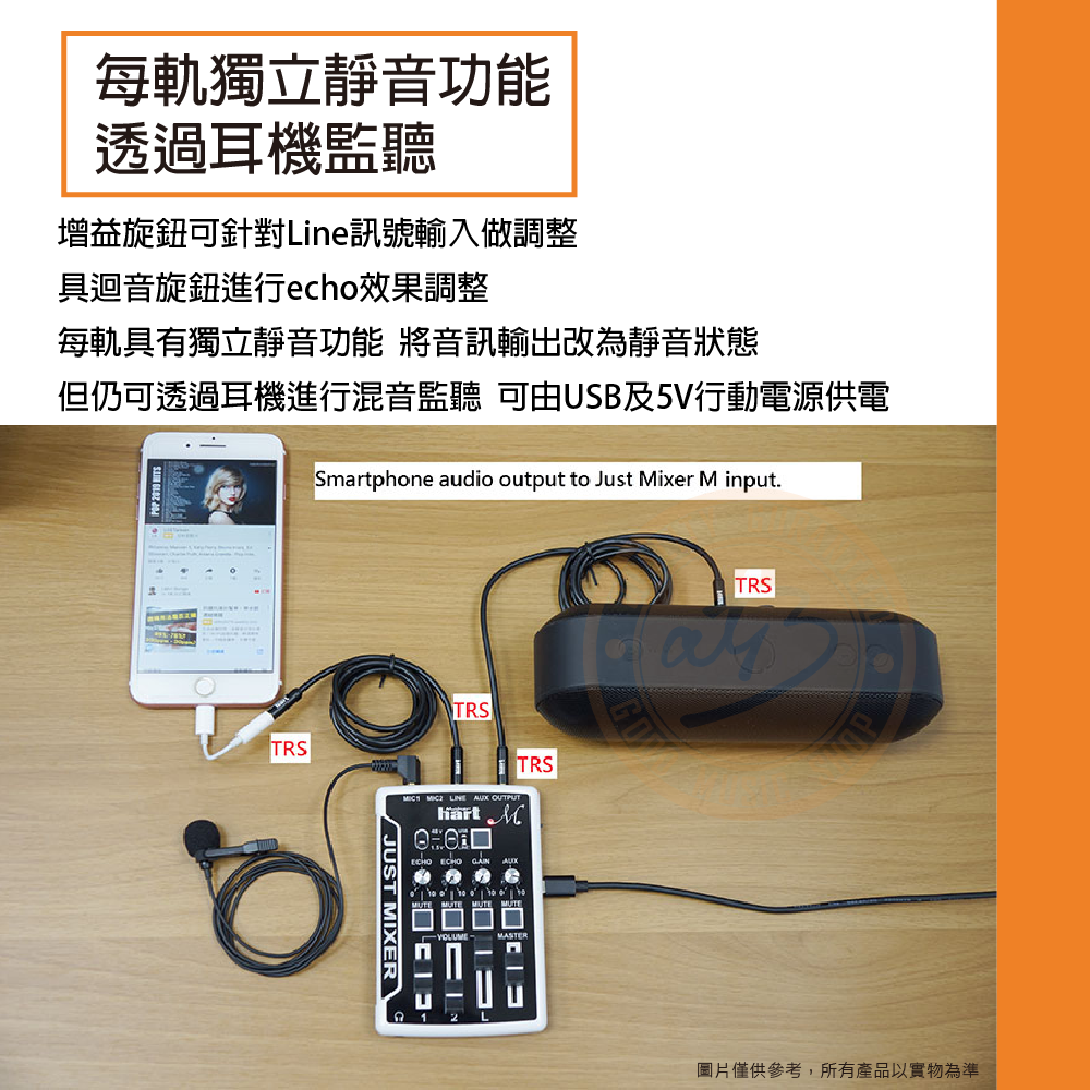 ◆ 增益旋鈕可針對Line訊號輸入做調整,具迴音旋鈕進行echo效果調整