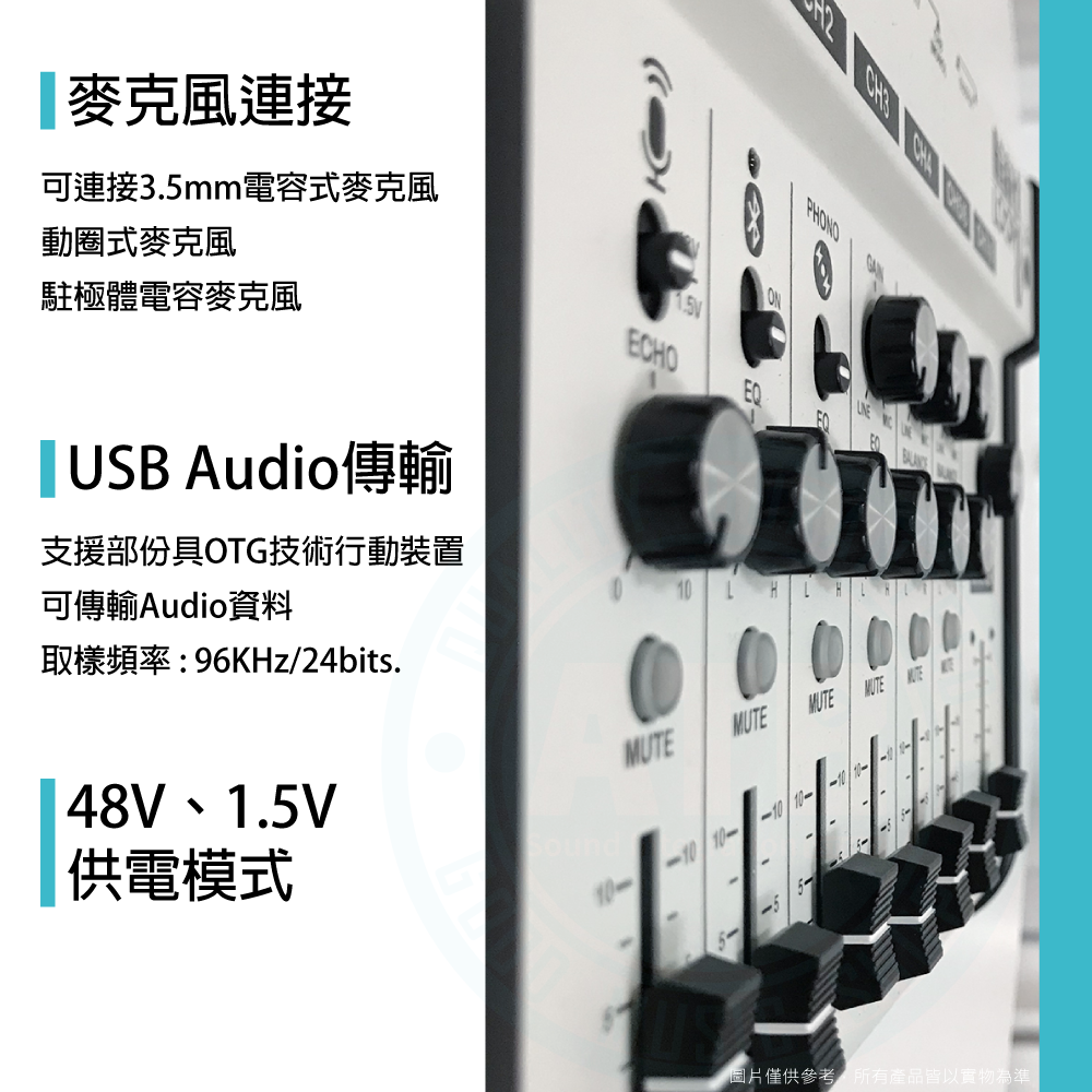 ◆多種麥克風供電模式,支援電容、動圈與駐極體麥克風。