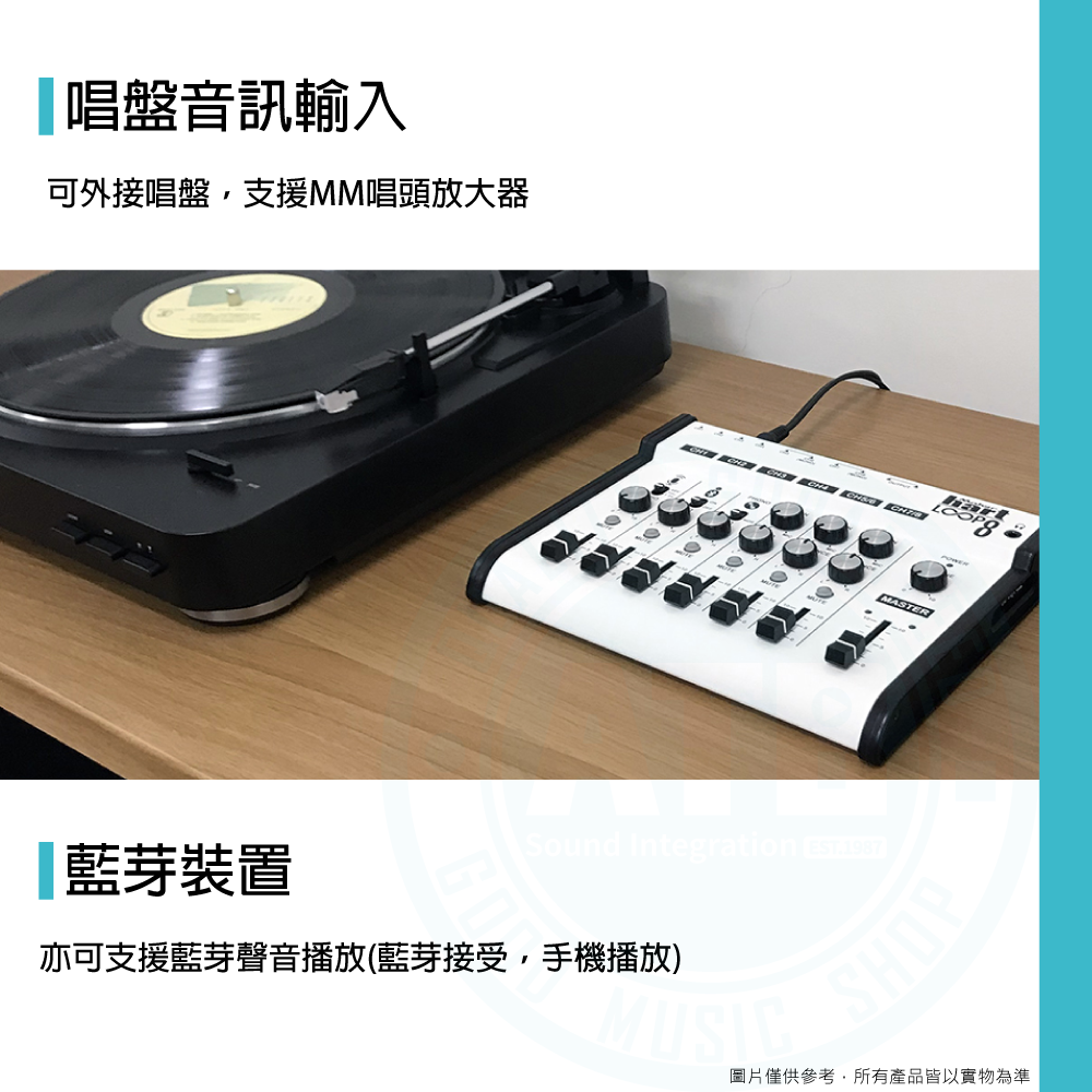 ◆支援黑膠唱盤輸入,內建 MM 唱頭放大器。