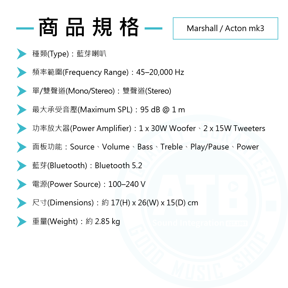 ◆ 經典Marshall標誌設計、注入50年傳奇精神