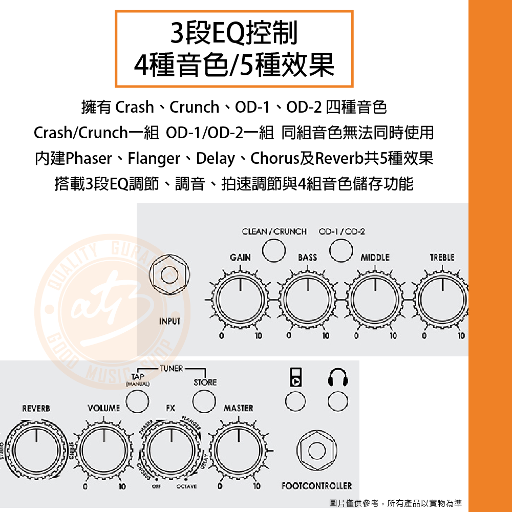 ◆ 擁有Crash、Crunch、OD-1、OD-2四種音色/3段EQ控制功能