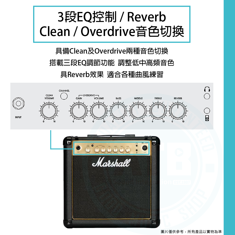 ◆ 具備Clean及Overdrive兩種音色切換、3段EQ控制、Reverb效果