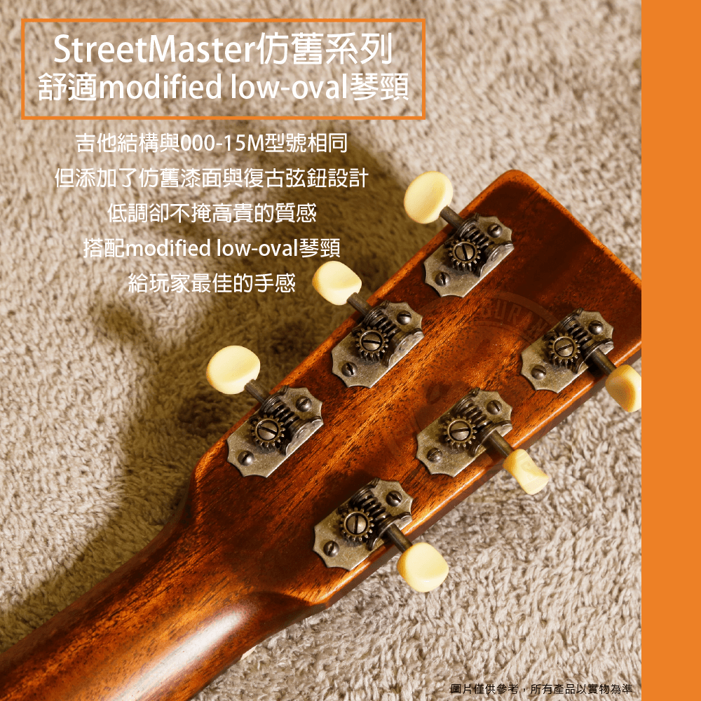 ◆ StreetMaster仿舊系列,添加了仿舊漆面與復古弦鈕設計