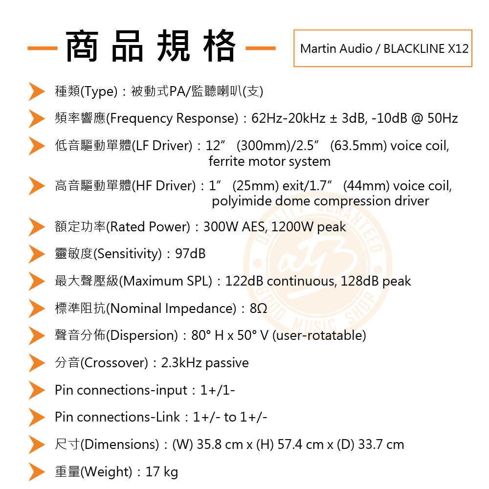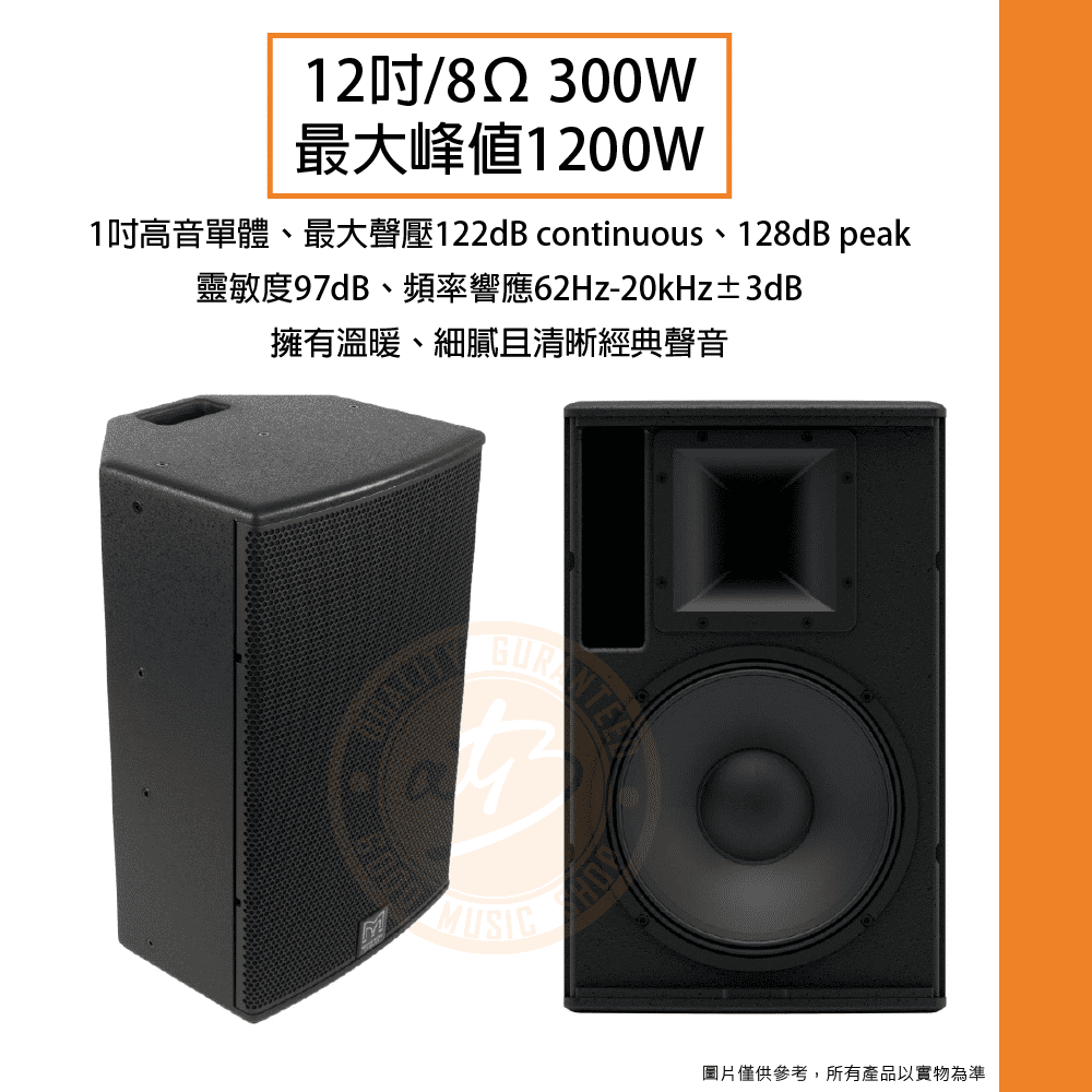 ◆ 12吋/8Ω 300W、最大峰值1200W