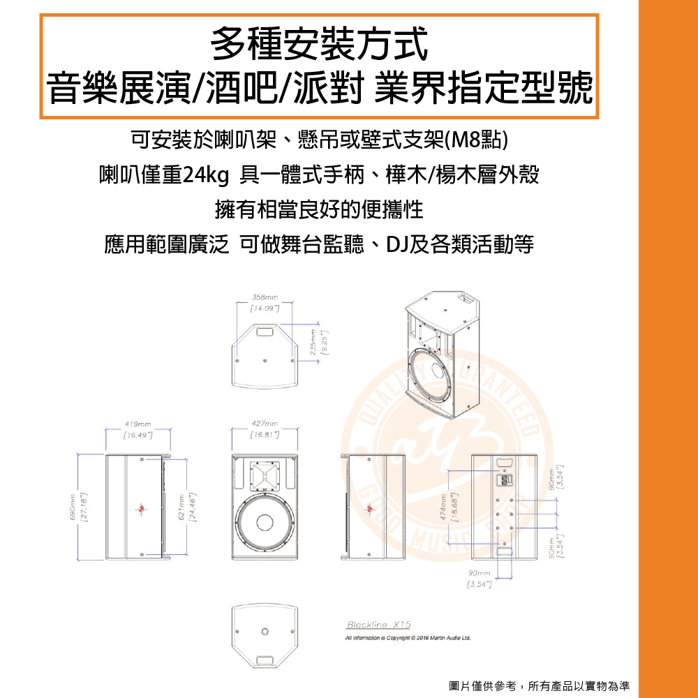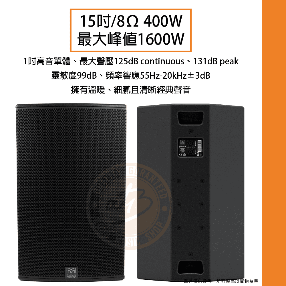 ◆ 15吋/8Ω 400W、最大峰值1600W