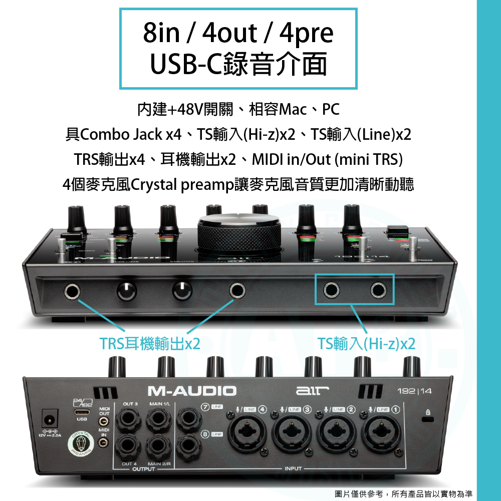 ◆ 8 In/ 4 Out/ 4 Pre,USB-C錄音介面