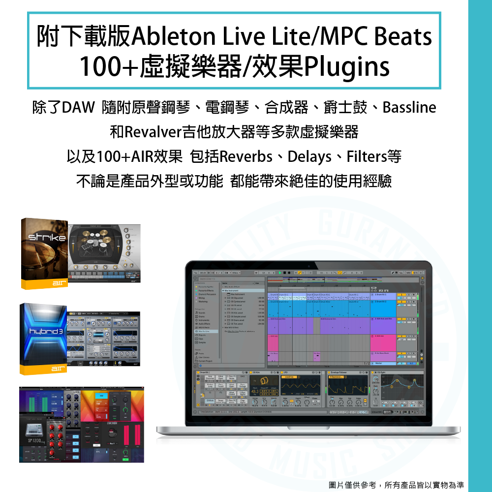 ◆ 附Ableton Live Lite、MPC Beats下載版,和100+虛擬樂器&效果器