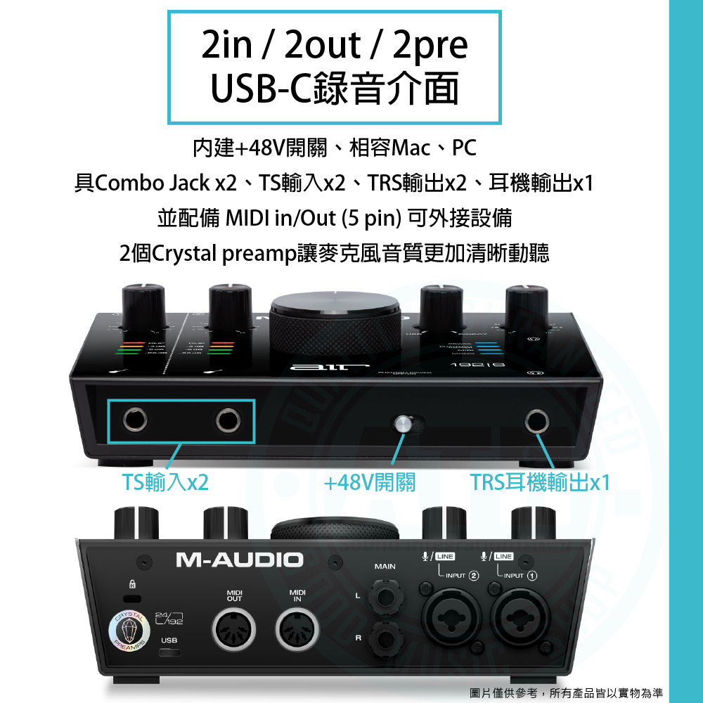 ◆ 2 In / 2 Out / 2 Pre,USB-C錄音介面