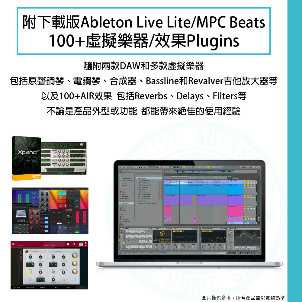 ◆ 附Ableton Live Lite、MPC Beats下載版,和100+虛擬樂器&效果器