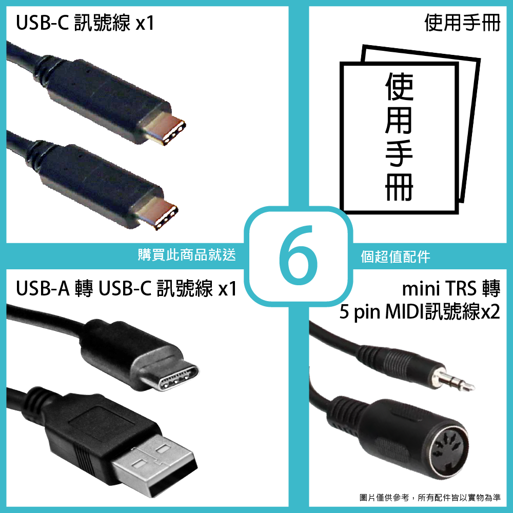 ◆ 具Combo Jack x2、TRS輸出x2、耳機輸出x1、RCA立體聲輸出x2、MIDI IO